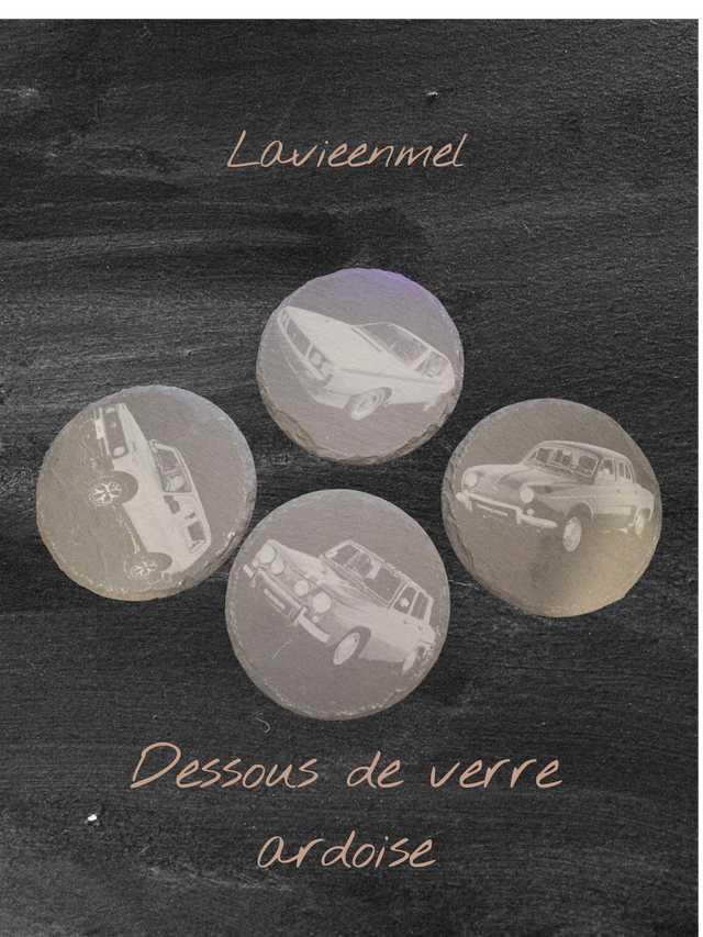 Lot de 4 dessous de verre ardoise avec support , uniquement sur commande via notre site photo et image possible.