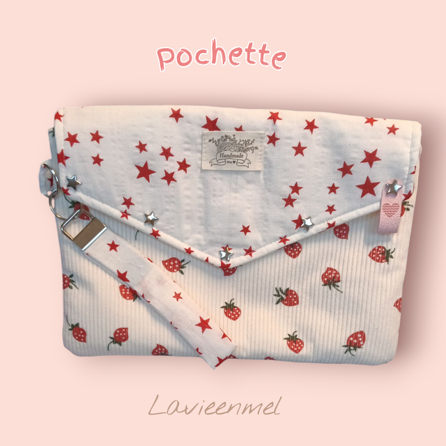 Pochette tablette H: 20 cm / l:28 cm velours motif fraise avec dragonne
