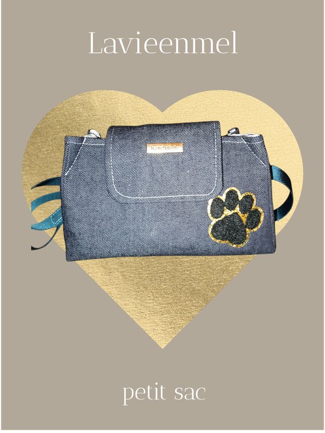 sac bandoulière fermeture rabat pression. matières coton et jeans floqué patte.